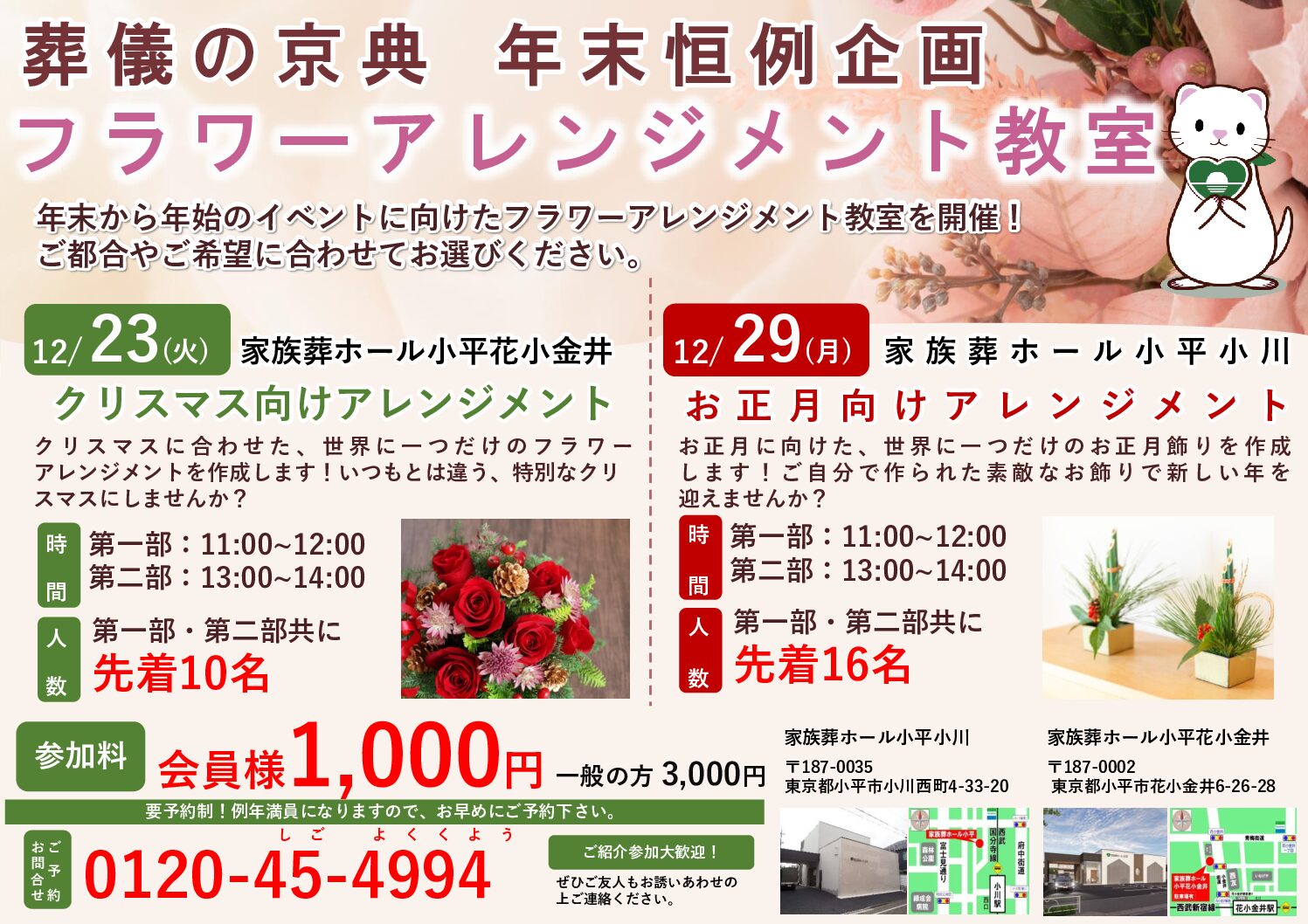 家族葬ホール小平小川では、定期的にイベントを開催しております。お気軽にご参加・ご相談ください。