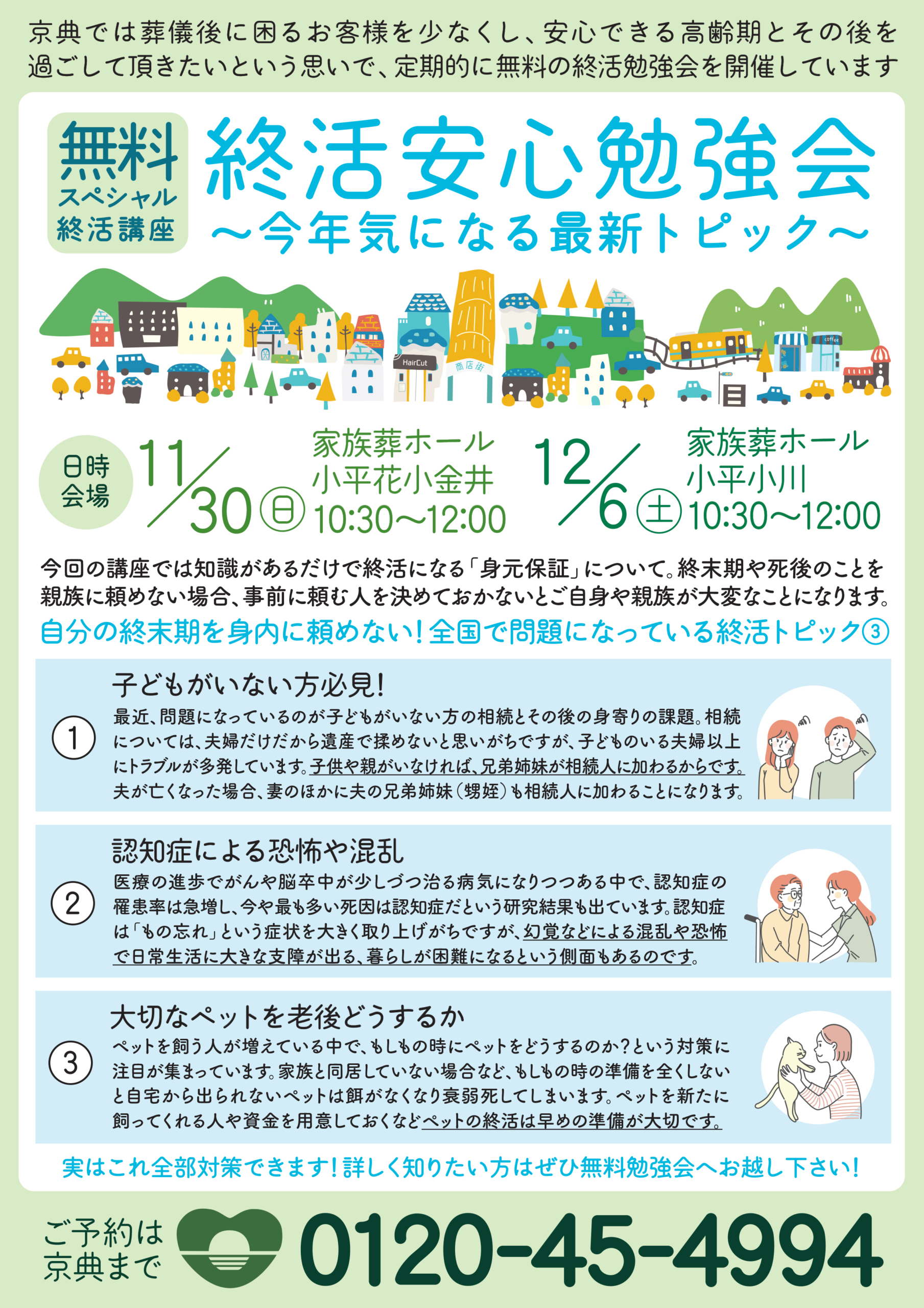 家族葬ホール小平小川では、定期的にイベントを開催しております。お気軽にご参加・ご相談ください。