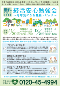 ご好評いただいております無料終活勉強会ですが 今回は「お墓じまい」をメインテーマに開催いたします。 皆様のご参加をお待ちしております。
