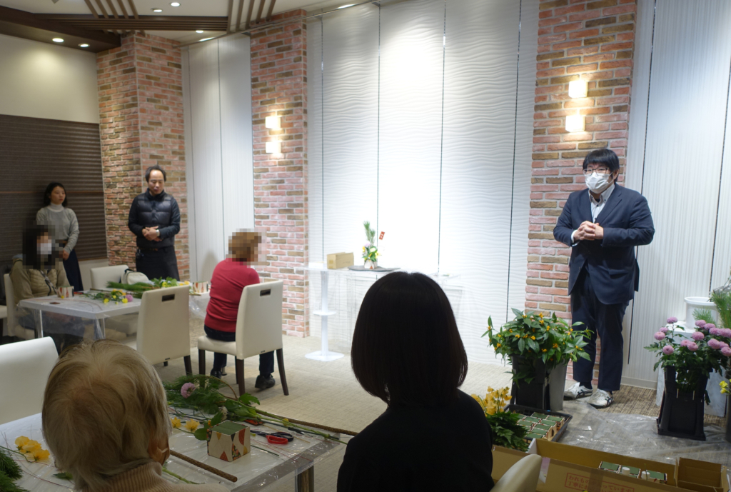 12月29日は小川ホールにて、お正月用のアレンジメントを