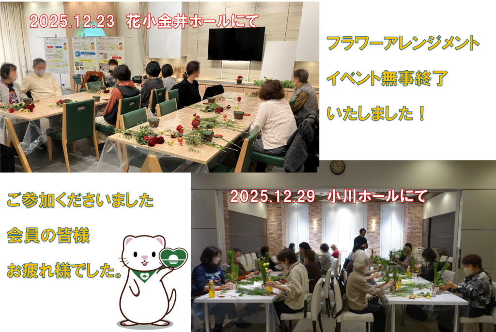 12月23日は花小金井ホールにて、クリスマス用のアレンジメントを