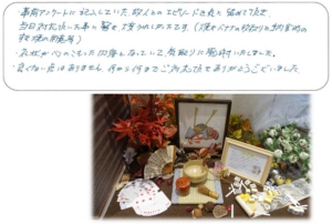 ・事前アンケートに記入していた故人とのエピソードを気に留めて頂き当日対応頂いた事...