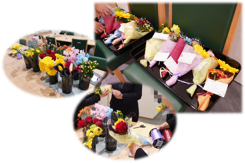 皆様で故人様へ向けてのメッセージカードやエンゼルブーケのお花束などをお作りいただき