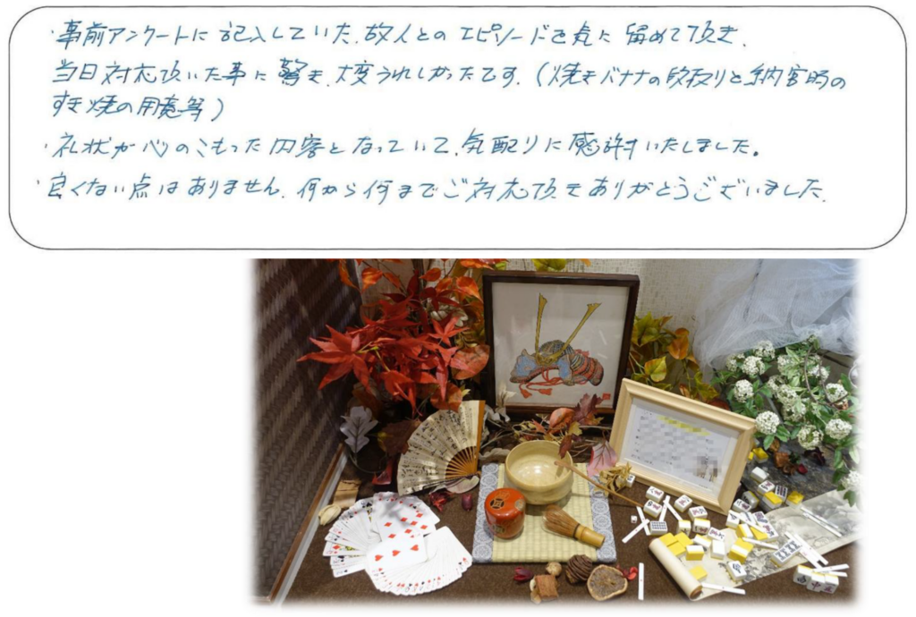 ・事前アンケートに記入していた故人とのエピソードを気に留めて頂き