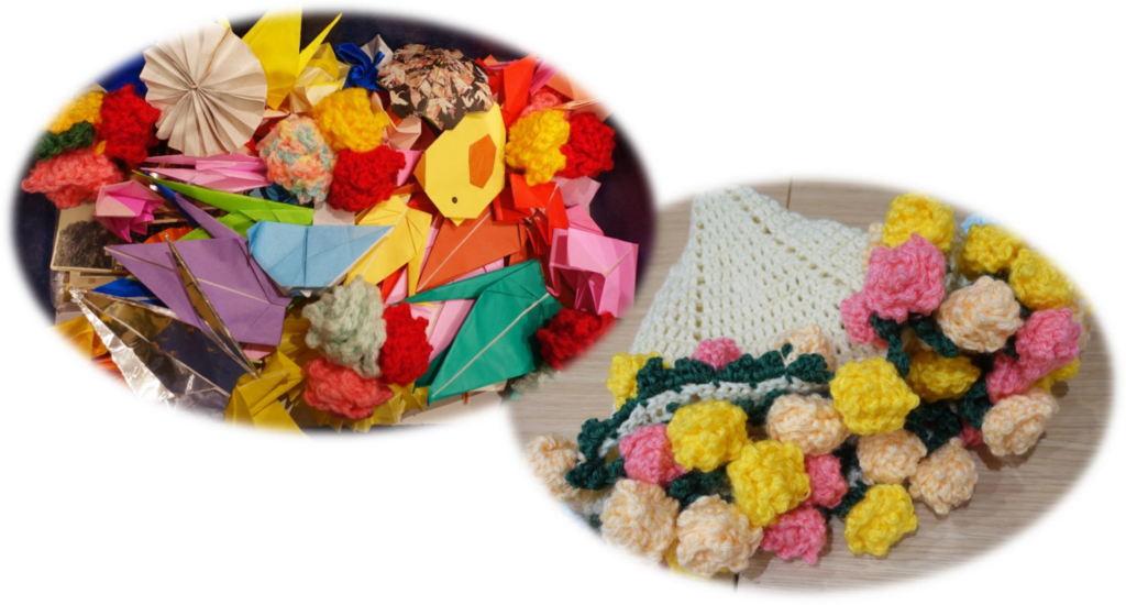 ご参列の皆様が折られた「祈り鶴」や手作りケープは最後にお棺にお納めいたしました。