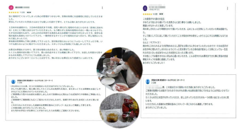 その他、ここでは書ききれない沢山の心遣いをいただき、こんな穏やかなお葬式ができた事に担当の奈良様他スタッフの皆様に感謝しています。ありがとうございました!