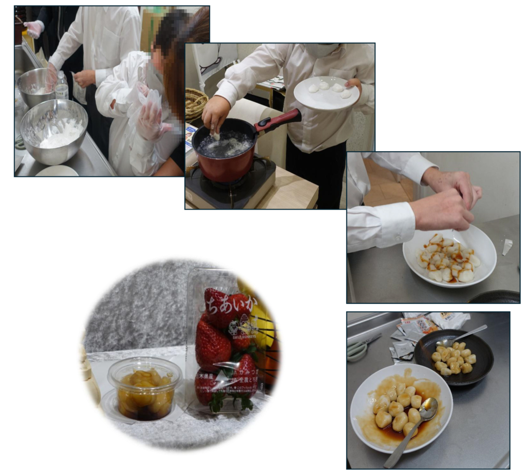 個人様がお好きだった「みたらし団子」をひ孫様たちに作っていただき祭壇にお供えし、出棺の際にはお棺にお納めいたしました。