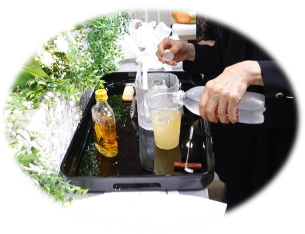 故人様がお好きだったハイボール。ご家族の皆様に作っていただき、お棺にお入れいたしました。