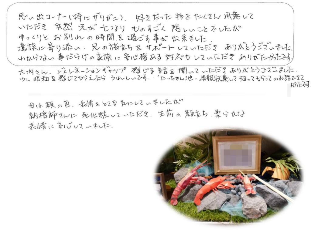遺族に寄り添い、兄の旅立ちをサポートしていただき、ありがとうございました。