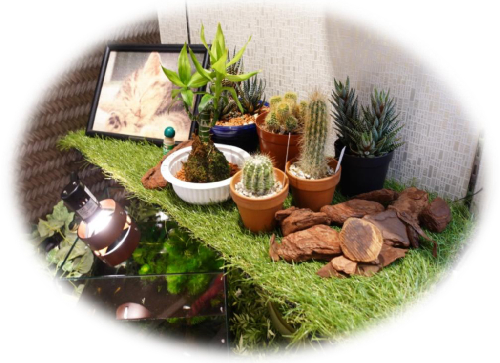 故人様が育てていらしたサボテンとメダカを思い出コーナーに再現いたしました。