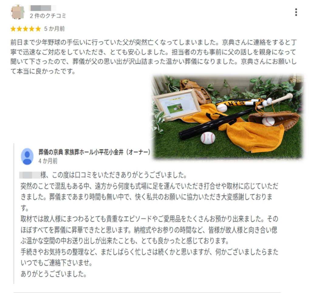 取材に応じていただきました。葬儀まであまり時間も無い中で、快く私共のお願いに協力いただき大変感謝しております。取材では故人様にまつわるとても貴重なエピソードやご愛用品をたくさんお預かり出来ました。