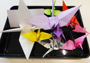 ご参列の皆様が折られた祈り鶴。お棺にお入れいたしました。